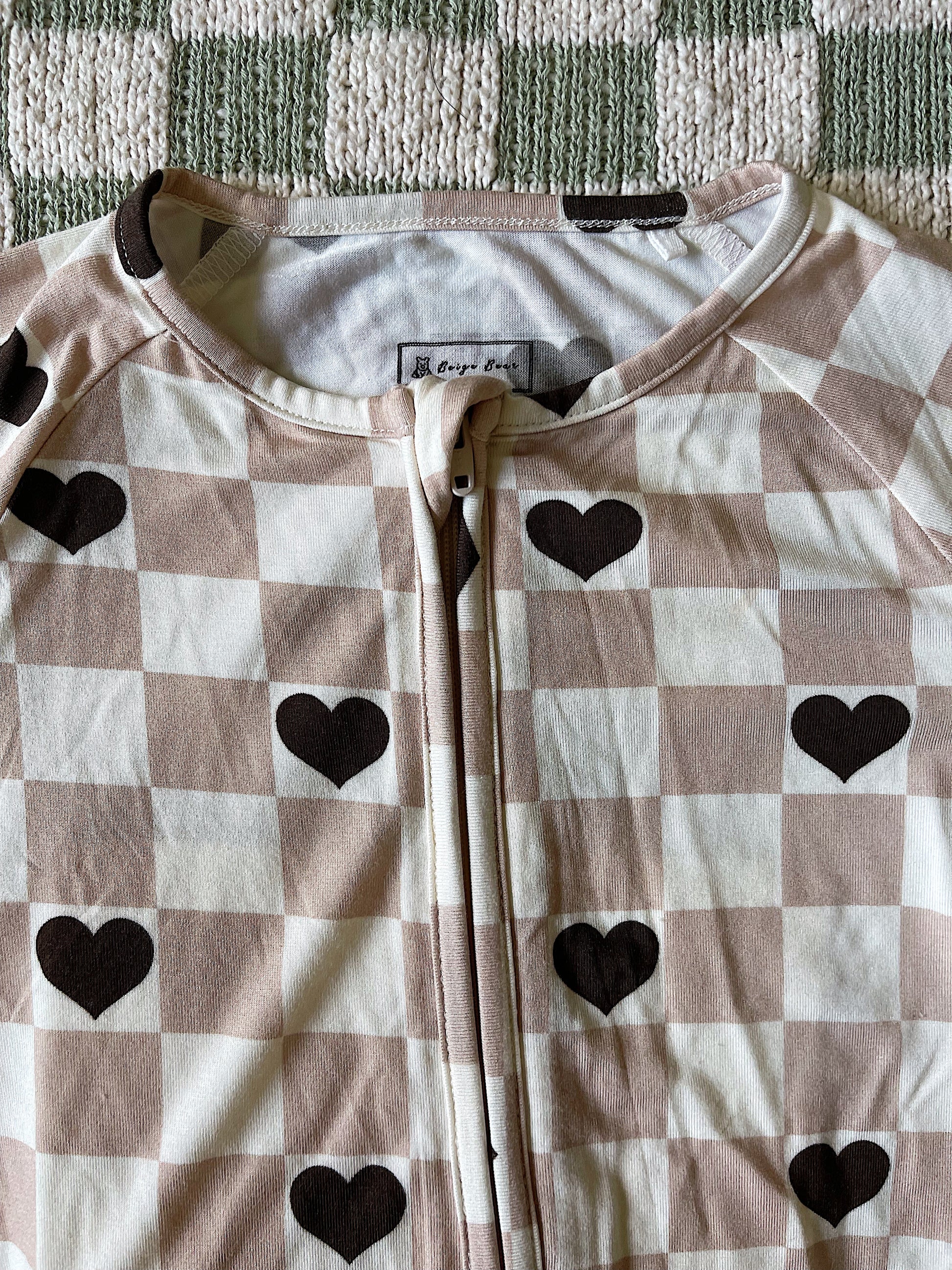 Bamboo Zip Pajamas - Beige Checkered Hearts